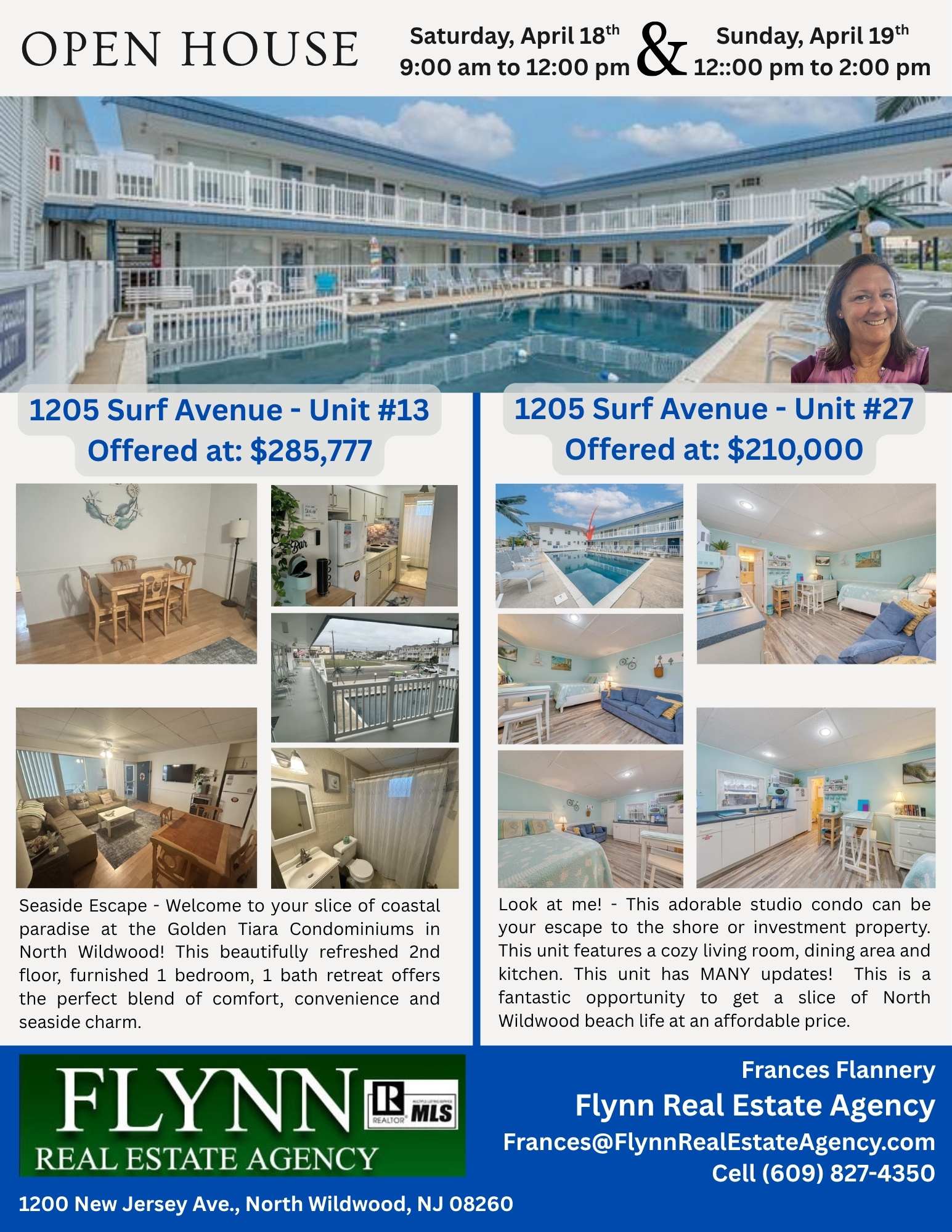 Come to our OPEN HOUSE! Golden Tiara Condominiums, 1205 Surf Ave., North Wildwood, NJ April 18th and April 19th, 2026
