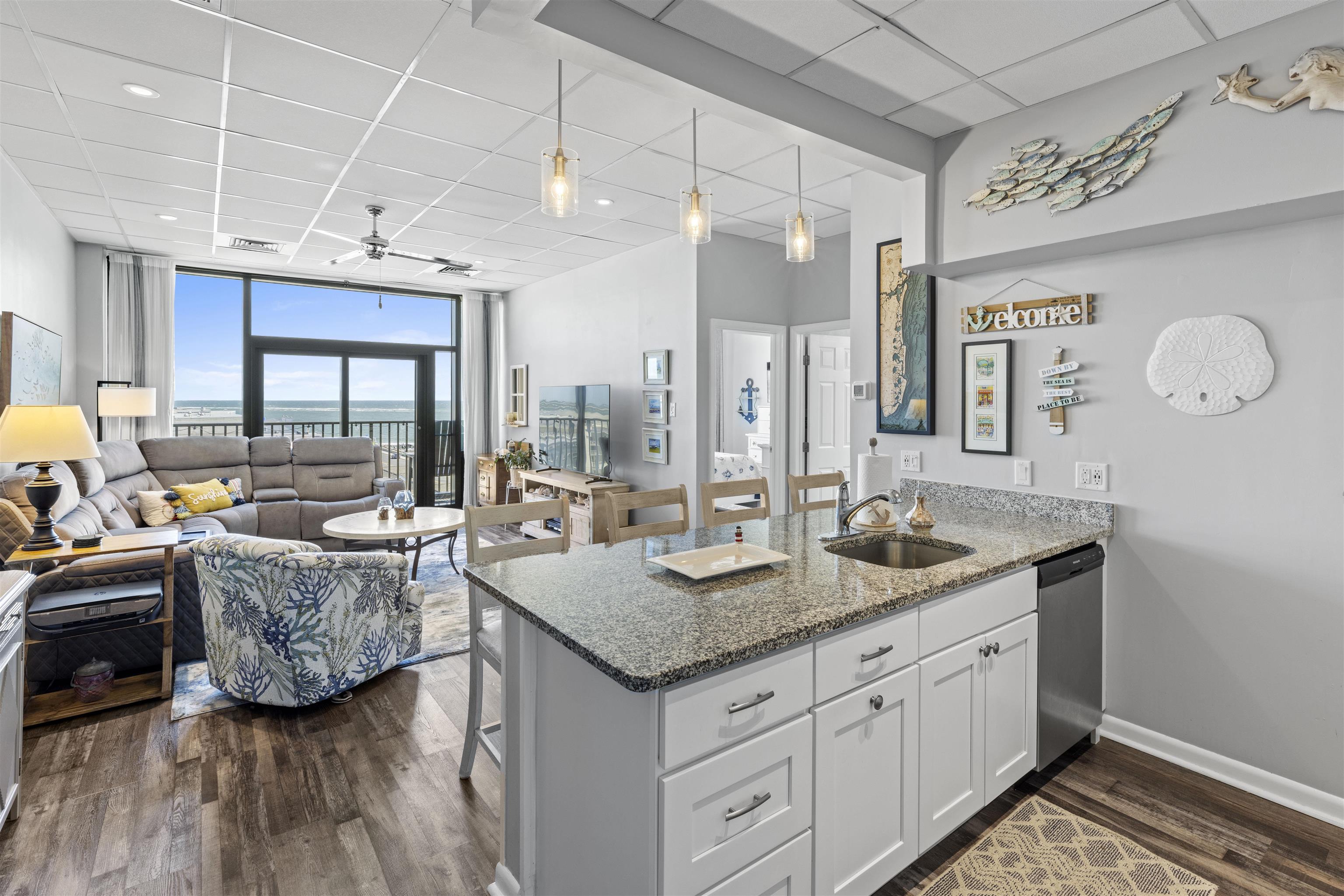 Imagine waking up to the gentle sound of waves and breathtaking ocean vistas from your very own slice of paradise. This exquisite 2-bedroom penthouse at the Regency Tower in North Wildwood is the embodiment of coastal living at its finest. Step into a world where modern luxury meets seaside charm. The open-concept layout is bathed in natural light, creating an airy and inviting atmosphere. Floor-to-ceiling windows frame mesmerizing views of the ocean, blurring the lines between indoor comfort and outdoor beauty. The gourmet kitchen is a culinary enthusiast's dream, featuring sleek stainless-steel appliances, gleaming granite countertops, and custom cabinetry. Whether you're preparing a gourmet meal or enjoying a casual breakfast, the spacious island provides the perfect gathering spot. Retreat to the tranquil bedrooms, where coastal-inspired d cor and plush bedding create a serene sanctuary. The spa-like bathroom boasts a luxurious walk-in shower with artisanal tile work, evoking the feel of a high-end resort. Throughout this penthouse, thoughtful design elements pay homage to its beachside location. From the weathered luxury vinyl floors to the tasteful nautical accents, every detail has been carefully curated to enhance the coastal ambiance. Step out onto your private balcony and let the salt-kissed air envelop you. Whether you're sipping your morning coffee or enjoying an evening cocktail, this outdoor oasis offers the perfect vantage point for watching stunning sunrises and sunsets over the ocean. Beyond your door, the Regency Tower offers an exceptional array of amenities, including a large resort-style pool, a fully equipped fitness center, office space with complimentary Wi-Fi, and a community room featuring sweeping ocean views, a bar, and a kitchen. Residents also enjoy two secure storage rooms, convenient laundry facilities, and an on-site, year-round maintenance office. The monthly condominium fee of $731 covers basic cable, electricity, water, sewer, trash service, master liability, flood insurance, and all common area maintenance. Your dream of beachfront living starts here.