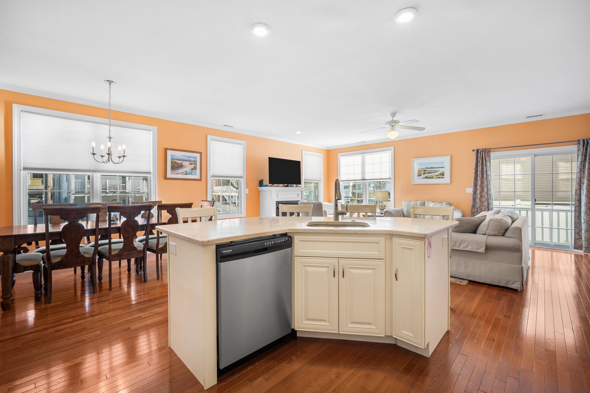 Beautiful Modern Corner Townhome Just Two Blocks to the Beach! Discover coastal living at its finest in this stunning 2-story, 2,200+ sq. ft. corner townhome, ideally situated only two streets back from the beach. Loaded with upgrades and high-end amenities including mint condition Oak hardwood flooring on both floors, marble counter tops, tile backsplash, stainless steel appliances, large island, this 4 bed 3.5 bath home offers the perfect blend of style, comfort, and convenience. The first floor welcomes you with a spacious foyer, a convenient half bath, interior garage access, and an impressive open-concept great room featuring a gas log fireplace and slider leading to the private, fully fenced rear and side yard. Outside, enjoy a paver patio, enclosed outdoor shower, and plenty of room for entertaining. Upstairs boasts a large primary suite with walk-in closet, a junior ensuite perfect for guests, two additional generous bedrooms, and another full bath. Additional highlights include a one-car garage, upgraded finishes throughout, and a highly sought-after location close to the beach, boardwalk, dining, and entertainment. Perfect for year-round living or a luxury shore retreat!